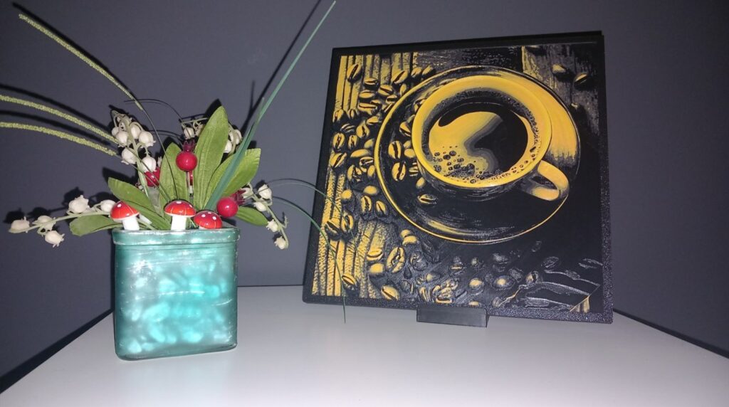 - Stalak – za izlaganje na stolu, isporučuje se uz svaki motiv, bez obzira hoće li se slika objesiti ili postaviti na ravnu površinu.