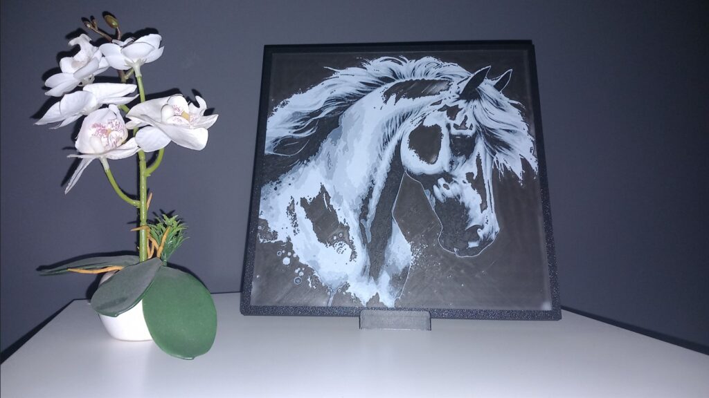 Okvir i stalak usklađeni su koloristički s motivom, a ujedno pružaju čvrstu i sigurnu prezentaciju.